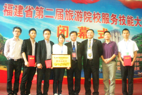 本届比赛为期三天,共设“中餐摆台、西餐摆台、中式铺床、鸡尾酒调制”四个比赛项目,每个项目分英语口试、理论测试、技能测试三个环节。经过激烈的同场竞技,beat365旅游学院07级旅游管理专业的林森同学最终获得“鸡尾酒调制”比赛项目一等奖,08级旅游管理高职专业的许清林同学获“西餐摆台”比赛项目一等奖,09级旅游管理高职专业的颜志明同学获得“中式铺床”比赛项目三等奖。beat365英国官方网站旅游学院参赛队荣获“福建省旅游院校服务技能大赛团体二等奖”。