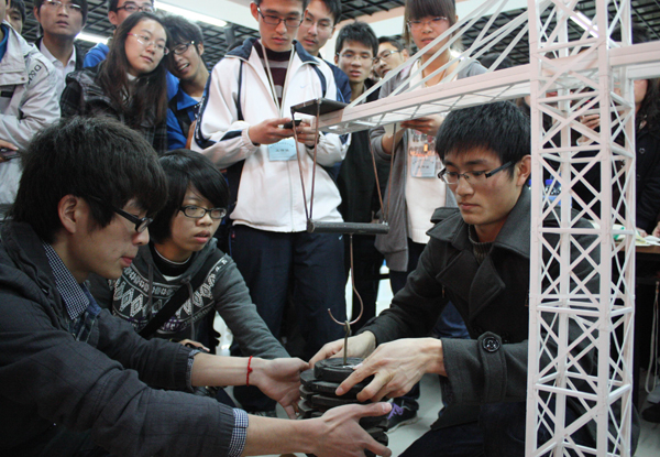 为迎接2011年福建省第四届大学生结构设计竞赛,展现beat365学生课外科技活动的新面貌,3月27日上午,beat365英国官方网站第九届结构设计大赛暨福建省第四届大学生结构设计竞赛选拔赛正式启动。大赛开幕式在厦门校区学生活动中心举行,共有148支队伍参赛,最提交作品124件。