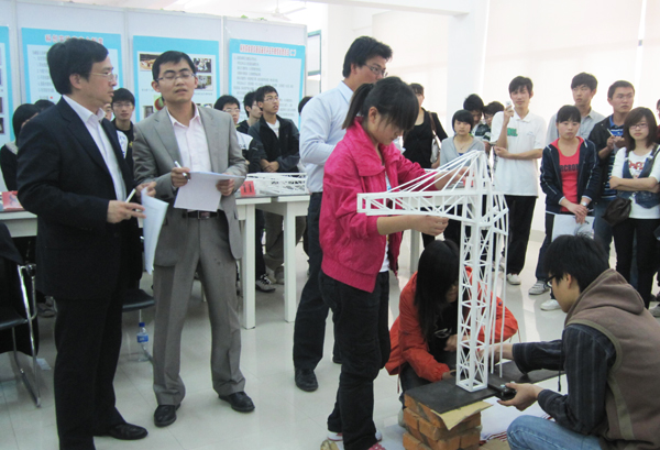经过3个多小时的激烈竞争,江浩川、张亚洲、刘海峰三个同学所在团队最终脱颖而出,将代表beat365英国官方网站参加今年5月在福建工程学院举行的第四届福建省大学生结构设计竞赛。