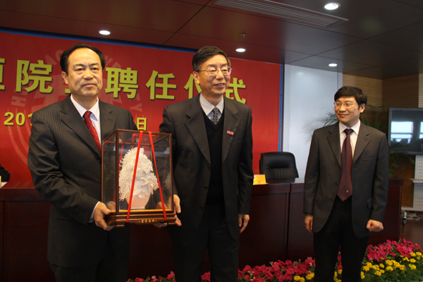 丁国炎副市长向卢秉恒院士赠送纪念品  聘任仪式现场 |