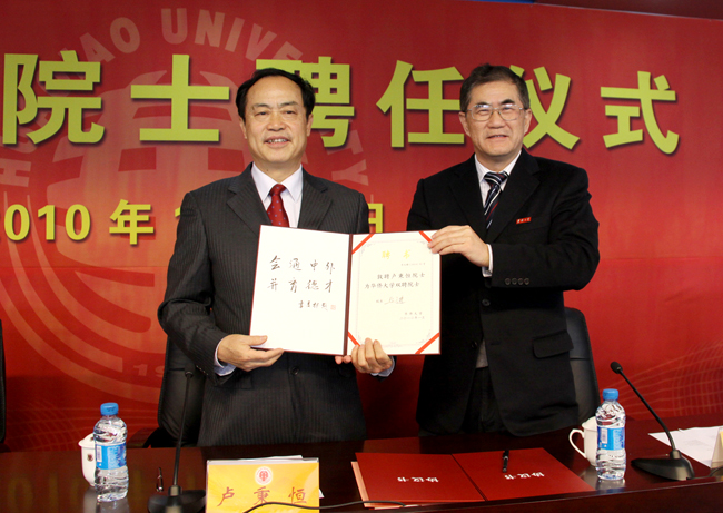 丘进校长向卢秉恒院士颁授双聘院士聘书