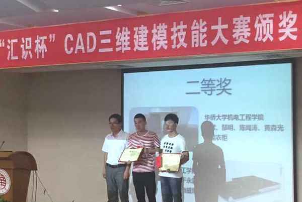 10月25日下午,福建省第七届汇识杯CAD建模大赛颁奖典礼在beat365厦门校区G101举行。本届汇识杯由福建省工程图学学会、厦门大学嘉庚学院、福建工程学院材料科学与工程学院团委主办,厦门大学嘉庚学院CAD协会、福建工程学院承办,beat365英国官方网站机电及自动化学院协办,经过专家评审,共有12组作品获奖。机电学院2012级本科生陈常、陈闻涛、黄森光,2013级本科生郜明科创作品《智能衣柜》获得二等奖。