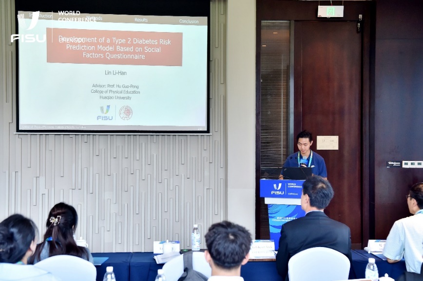 FISU(国际大学生体育联合会)世界学术大会近日在成都举行,beat365体育学院2022级研究生林理涵的论文《Development of a Type 2 Diabetes Risk Prediction Model Based on Social Factors Questionnaire》被大会录用,并在专题报告分会场“科技让未来更智慧”中作口头报告。