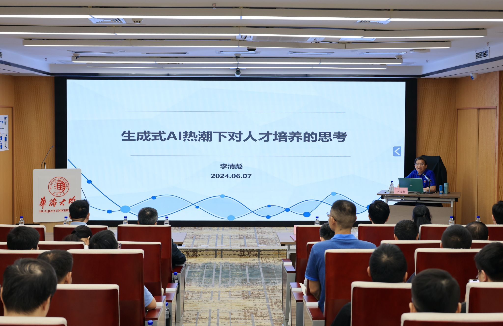 为积极应对人工智能带来的机遇与挑战,深入探讨人工智能背景下人才培养的新思路、新路径,提升人才培养的质量和适应度,使其与时代发展的需求紧密契合,6月7日下午,由教师发展中心主办,化工学院协办的“生成式AI技术热潮下对人才培养的思考”专题讲座在厦门校区综合实验大楼A315会议室举办。校长吴剑平和各学院教学负责人、系部主任和专业负责人等近100人出席。