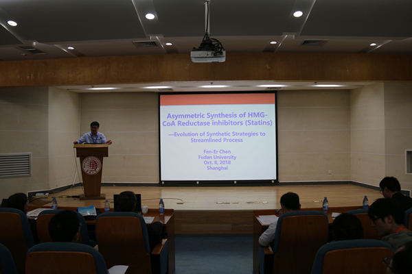 在10日、11日举行的2018年《中国化学快报》青年有机化学家论坛上,来自国内外著名高校或研究机构的专家学者先后为与会师生做了学术报告。中国工程院化工、冶金与材料工程学部院士、复旦大学陈芬儿教授讲授了“HMG-CoA还原酶抑制剂(他汀类药物)的不对称合成 - 合成策略的演化与简化流程”,报告其团队采用“化学动力学”拆分他汀类原料药不对称合成的方法,从而避免氰化钠在制药过程中的引入,减少流程中有毒物质的使用,从而得到非氰化他汀类药物;法国国家科学研究院的Angela Marinetti剖析“具有不寻常分子支架的手性磷化物:用作对映选择性反应中的配体和有机催化剂”;厦门市政协副主席、“卢嘉锡化学奖”获得者、香港“求是科技基金会”杰出青年学者奖得者、国家杰青黄培强教授介绍了“天然产物的高效合成及其方法学”;厦门大学国家杰青夏海平教授介绍“碳龙化学:碳链对过渡金属螯合的故事”,该策略利用过渡金属替代有机三并五元环骨架的中心sp3杂化碳原子,成功实现了10碳龙与过渡金属螯合的三并五元环骨架的构筑;华东师范大学长江学者杨海波教授做了关于“面向复杂体系的可控自组装”的报告;法国图卢兹大学Remi Chauvin教授则以“选择稳定P-电子贫乏的膦:从选择性重排到共价配位与静电配位”为题作学术报告。