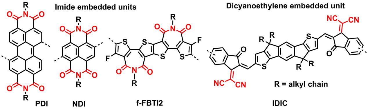 图一:文献报道高效率(> 8%)聚合物受体材料的构筑单元