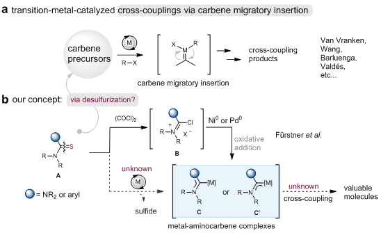 图1. 金属卡宾偶联反应与脱硫作用