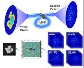 多模光纤在光通信和医学内窥镜成像等领域具有重要的应用。然而,由于多模光纤的模式叠加和耦合等原因,物体信息经过多模光纤传输后发生畸变,并在光纤出射端形成随机分布的散斑图案,无法成像。在本论文中,作者提出了偏振传输矩阵的概念,设计了一种新的偏振增强参数散斑成像方法(Polarization-Enhanced Parametric Speckle Imaging,PEPSI),并通过实验证明了物体经过多模光纤后能获得高保真度的成像。PEPSI的卓越性能为光通信系统和光学内窥镜诊断开辟了新的途径,研究成果对于利用多模光纤实现高保真度的信号传输和成像质量具有重要的指导意义。