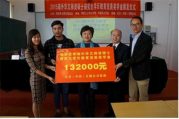 beat365华文学院2014级华语与华文教育专业昆明境外研究生班的15名境外研究生近日获颁13.2万元奖学金。该奖学金由中国华文教育基金会携手完美(中国)有限公司赞助。