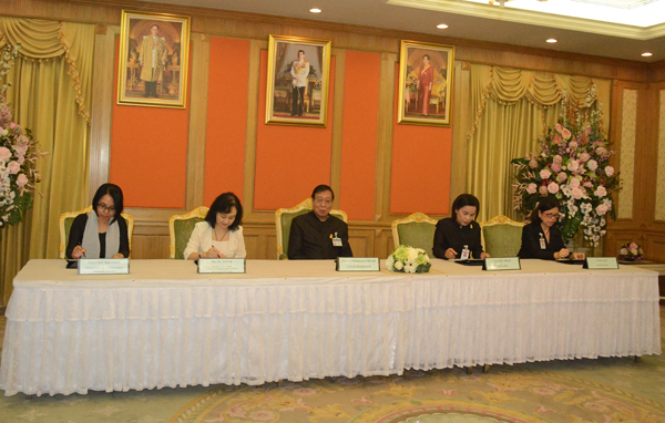 泰国国家立法议会议长蓬佩荣誉教授作为签字仪式主席出席合作备忘录签字仪式。上议院秘书处秘书长兼国家立法议会秘书长瓦拉乐女士向主席作项目报告。泰国国家立法议会议员、中国驻泰王国大使馆文化蓝素红阁下、中国驻泰王国大使馆教育组周高宇一秘及立法议会相关人员出席签字仪式。