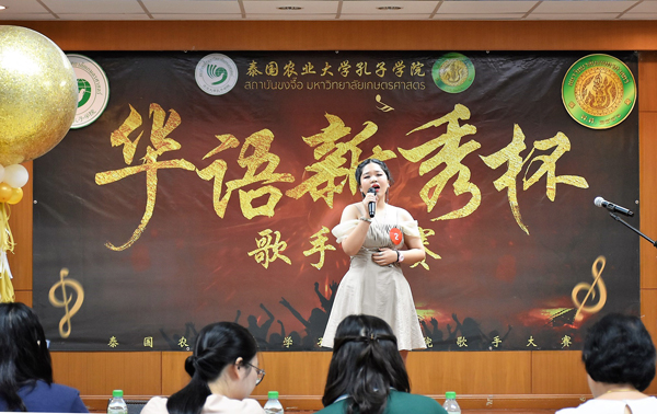 泰国农业大学孔子学院3月3日举办“华语新秀杯”卡拉OK大赛。来自泰国农业大学的21名选手经选拔进入决赛角逐。