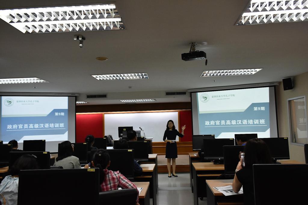 泰国农业大学孔子学院对“政府官员高级汉语培训班”一直十分重视。本期培训班由孔子学院外派教师李爽授课,教材选取了经济、文化、教育、生活等各个方面的主题,采用任务式教学法,配合相关的语言形式,循序渐进地提高学员的汉语口语表达能力。