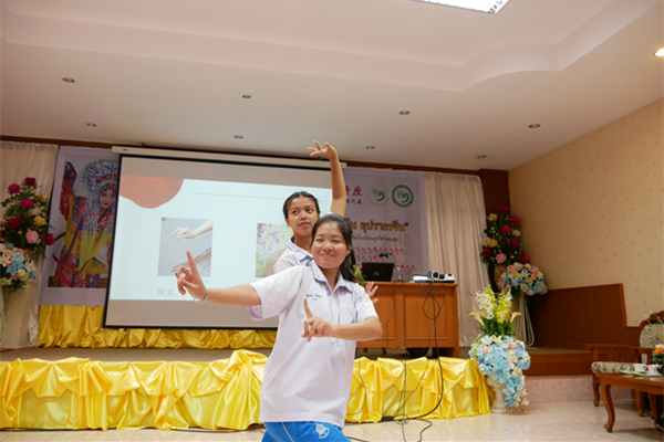 泰国普吉中学孔子课堂的学生体验戏曲程式
