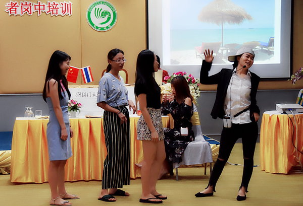 在第一天的培训中,国家汉办泰西南地区志愿者管理教师王虹人详细介绍、解读了《志愿者在泰工作、生活注意事项及管理规定》,并结合实例分析,开展一场跨文化交际与适应的辅导。在领事保护和安全教育环节,中国驻普吉领事馆办公室代表李利珍、李佳玲共同为大家作《海外中国公民领事保护介绍及泰南安全案例》专题讲座,为志愿者教师详细解读了在泰安全领事保护事宜,介绍了泰南的基本概况、交通安全和涉水安全以及如何有效寻求使馆领事保护等。普吉中学孔子课堂中方负责人、beat365英国官方网站哲学与社会发展学院副教授罗建平作《逐梦青春,砥砺前行——汉语教师志愿者职业生涯规划》的专题讲座,结合自身三年多对外汉语教育工作中接触到的一百多位志愿者的具体实例,分享了关于汉语教师志愿者的职业生涯规划的经验与建议,鼓励志愿者们坚定信念,不忘初心,逐梦青春,砥砺前行。在教学示范环节,留任志愿者张威、新任志愿者边晓苑分别展示了两场生动有趣、风格各异的汉语课堂教学,根据不同年龄和不同汉语水平的教学对象,采用不同教具、运用不同教学方法,结合图片、生词卡片、多媒体、小组竞赛、游戏等多种方式展开教学。