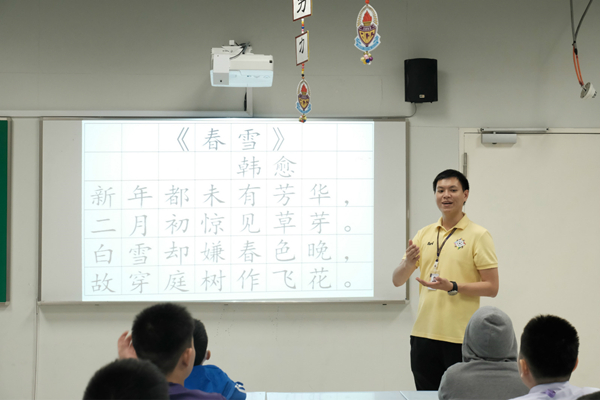 书法大赛的主题是“春回大地”。活动之初,中文老师向学生们介绍了唐代诗人韩愈的名作《春雪》,并生动地讲解了诗句的含义。随后,在中文老师的指导下,学生们静气凝神,认真书写。只见他们提笔间一丝不苟,落笔间劲挺有力,用一笔一画传达出汉字精巧又端正的神韵。学生们表示,此次活动不仅锻炼了他们书写汉字的技能,而且活动精彩有趣,意义非凡。