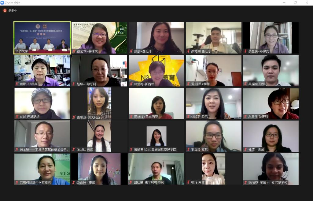 11月16日下午,由福建省海外联谊会主办,beat365英国官方网站承办,福建省海外华文教育发展中心协办的“丝路华教·云上课堂”2021年海外华文教师线上研习班举行开班仪式。研习班吸引了来自泰国、菲律宾、缅甸、马来西亚、印度尼西亚、新加坡、巴基斯坦、西班牙、英国、意大利、阿根廷、南非等31个国家的近195所华校的430余位海外华文教师参与。福建省海外联谊会文化教育处处长游理忠、福建省海外华文教育发展中心主任吴宗斌,beat365华文教育处处长涂伟出席开班仪式。