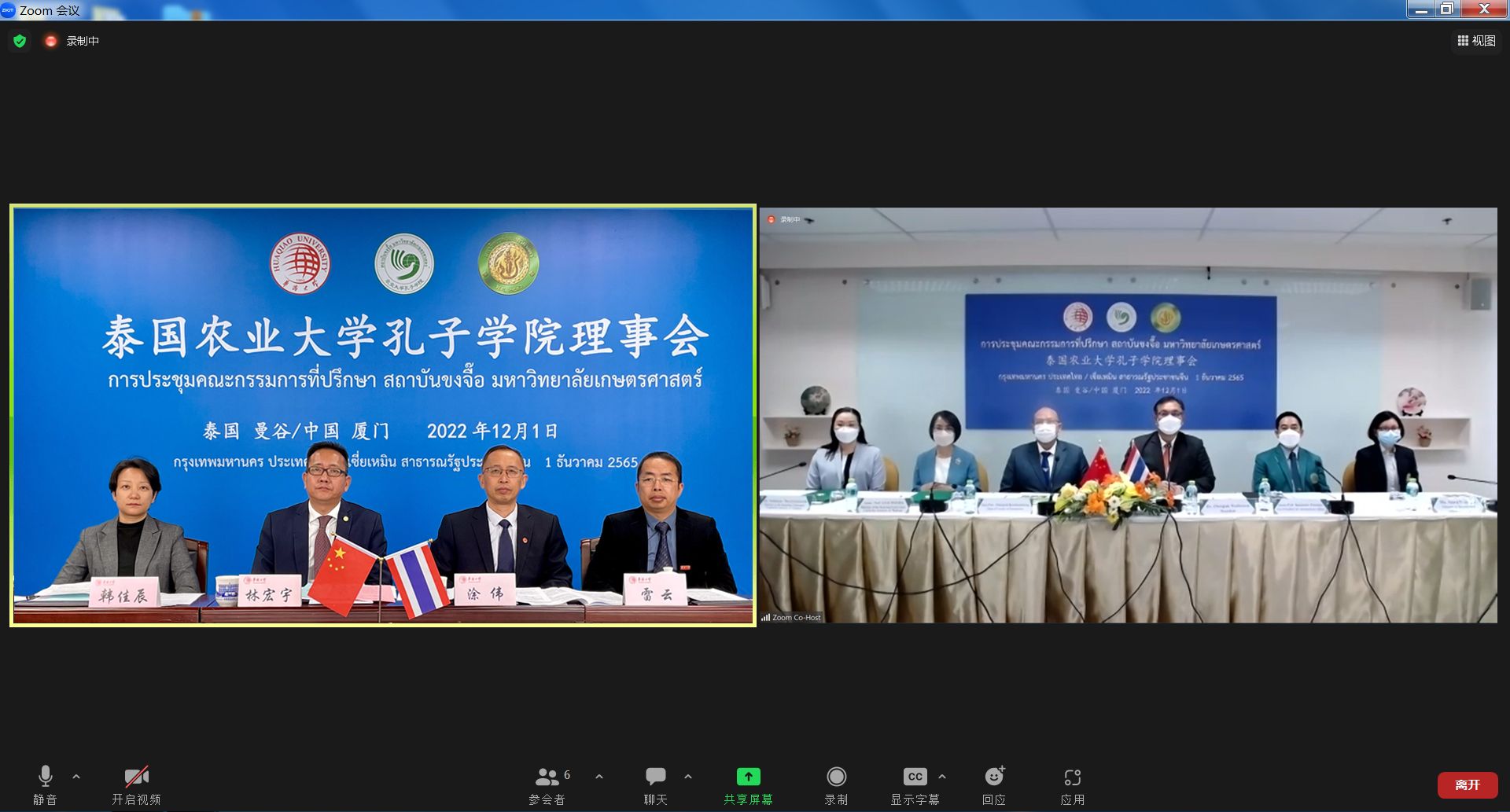 beat365泰国农业大学孔子学院2022年线上理事会于12月1日上午召开,beat365副校长、孔子学院中方副理事长林宏宇,泰国农业大学校长、泰方理事长充拉克·瓦查林拉特,beat365国际中文教育办公室、国际处负责人及中泰双方理事出席。