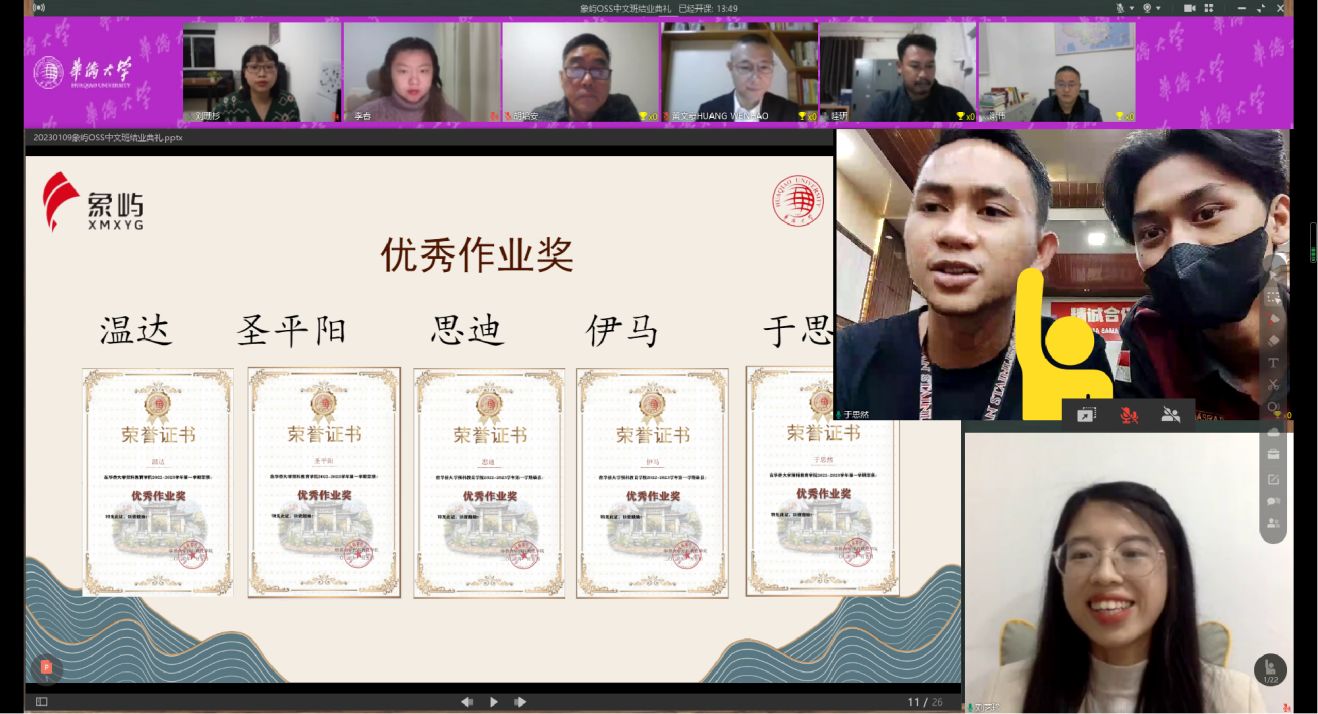 1月8日,“象屿集团印尼员工线上短期中文速成班”举行结业典礼,展示学生们线上四个多月的学习成果,表彰学习典范。