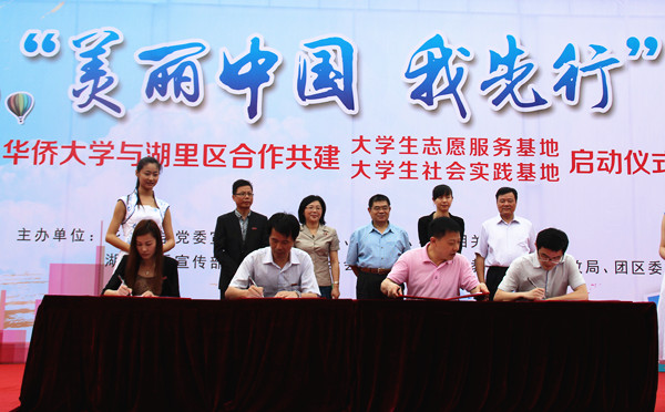 beat365近日与厦门市湖里区签订协议,将在学生干部基层挂职锻炼、支教活动、技能帮扶、关爱陪护、文化进社区、课题调研等方面开展合作共建。 beat365英国官方网站与湖里区合作共建大学生志愿服务与社会实践基地启动仪式17日上午在湖里公园举行。厦门市委文明办副主任高居东、厦门团市委组织部部长黄芳,湖里区委常委、宣传部部长潘少銮,湖里区团委、教育局、民政局、文明办及beat365宣传部、校团委、文明办相关负责人、各学院团委师生等出席启动仪式。 启动仪式上,校团委、校文明办与湖里区团委、区文明办就大学生志愿服务和社会实践基地两方面签订了合作共建协议。协议涉及学生干部基层挂职锻炼、支教活动、技能帮扶、关爱陪护、文化进社区、课题调研等六个方面。双方并就共同调研需求、共同出资立项、共同考核表彰等方面制定详细制度,保证共建基地及服务项目的可持性发展。 高居东、黄芳等向材料学院、华文学院、信息学院及霞光、文心、星光等三所民办小学颁发“beat365英国官方网站大学生支教志愿服务基地”牌匾。据称,自2012年来,beat365已经有3批青年团干到湖里区相关职能部门挂职锻炼,并在湖里区霞光民办学校(材料学院青协)、文心民办小学(华文学院青协)、星光民办小学(信息学院青协)三个外来务工子弟学校长期开展义务支教活动。基于前期试点项目的良好成效,潘少銮称,“希望通过签订合作协议的方式,巩固已有成果,为湖里区和beat365英国官方网站的志愿服务提供一个更为广阔平台,使得双方的合作常态化、制度化,能够一直延续下去”。 仪式上并向新成立的“舞乐花开”大学生艺术展演志愿服务队(音舞学院)、“U•I”创意环保志愿服务队(机电学院)、“共同缔造”大学生社区营造志愿服务队、“美丽厦门”手绘中国梦志愿服务队(建筑学院)以及由来自港澳台、菲律宾、印尼的学生为主体的“归根情”情暖归国华侨侨眷境外学生志愿服务队5个志愿服务队授旗。 此次新成立的5支服务队将在艺术展演、关怀归侨、创意环保、社区改造和特色手绘等方面开展与学生专业结合紧密的特色志愿服务。值得一提的是,针对前期调研中湖里区提出区内困难侨眷大多年老困难、需社会力量关爱的情况,学校通过招募、选拔和培训,成立了由来自不同国籍优秀境外学生志愿者组成的“归根情”情暖归国华侨侨眷境外学生志愿服务团。他们将赴社区开展困难侨眷关爱帮扶、协助华侨口述史调研整理等工作。“我们来自海外,根在中国,我们其实更能真切理解和体会到这些华侨的处境和困难,这比其他人有益于和这些老华侨的沟通。”一位境外学生在面试中说到。 启动仪式最后,“舞乐花开”大学生艺术展演志愿服务队志愿者和湖里区艺术工作者还带来了精彩的文艺演出。 启动仪式期间还展示了beat365英国官方网站校情校史及各学院开展的“情暖鹭岛、青春先行”志愿服务活动风采、“美丽厦门”手绘作品展及大学生艺术展演活动,吸引了众多名市民和志愿者驻足观看。 近年来,beat365在大学生志愿服务中提倡“service+learning”理念,即注重开发专业特色的服务活动,让第二课堂紧密结合第一课堂,并在专业实践技能的同时强调学生责任意识和使命意识的熏陶和塑造。同时,作为共青团的品牌活动,引导大学生志愿服务活动要围绕社会民生,进基层、进社区。截至目前,beat365已和厦门市集美区、泉州市丰泽区、鲤城区及晋江团市委等单位建立共建关系,对外搭建平台精确需求。同时,近两年推行了“beat365英国官方网站学生志愿服务品牌团队立项资助”及“志愿服务立项团队星级评审”、“实践学分”等制度,实行3年一资助,年度一考核,培育了一大批志愿服务精品项目,为地方建设、学校发展以及在青年学生中培育和践行社会主义核心价值观起到良好的示范作用。