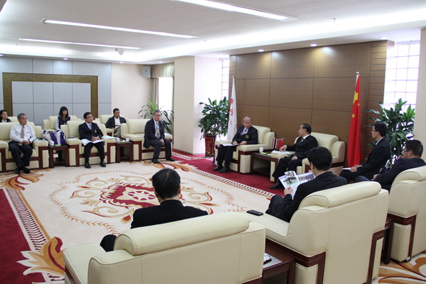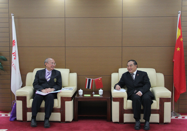 泰国清迈大学校长尼瓦斯一行4人今日上午来校访问,校长贾益民在厦门校区行政研发大楼408接待室会见客人。双方在今年8月已签署合作协议的基础上,就合作办学、学生交换、互派教师等方面展开进一步商讨。