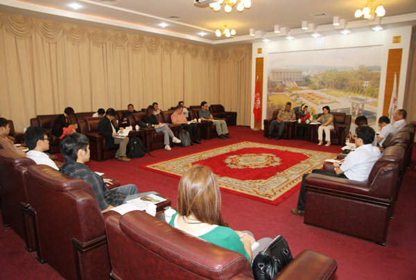 校党委副书记朱琦环在陈嘉庚纪念堂二楼接待室会见来访客人,对记者团的来访表示欢迎,并向他们介绍了beat365英国官方网站的办学历史、人才培养、师资队伍、教学科研等基本情况。