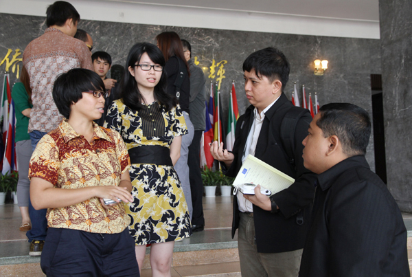 随后,记者们分别与在校就读的马来西亚、印尼、泰国学生进行交谈,了解他们的学习、生活情况。
