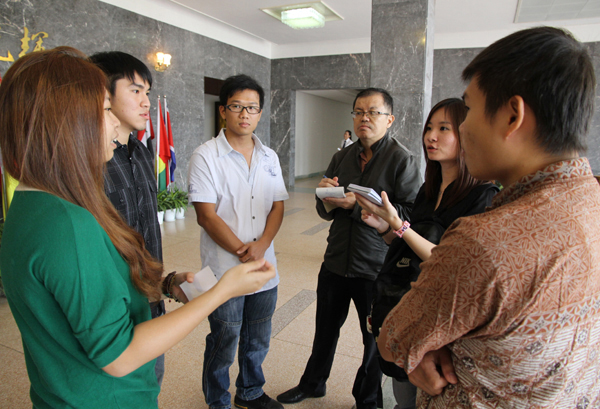 记者们分别与在校就读的马来西亚、印尼、泰国学生进行交谈