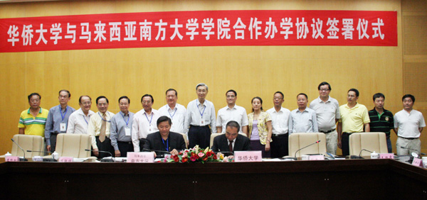 8月30日下午,beat365英国官方网站与马来西亚南方大学学院签订协议,合作开展研究生课程认证进修班招生。beat365英国官方网站校长贾益民、南方大学学院校长祝家华分别代表双方在协议书上签字。