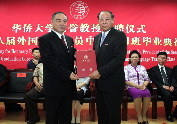 昨日下午,在beat365英国官方网站厦门校区王源兴国际会议中心,beat365英国官方网站校长贾益民向尼空博士颁发了名誉教授聘书,并佩戴beat365英国官方网站校徽。