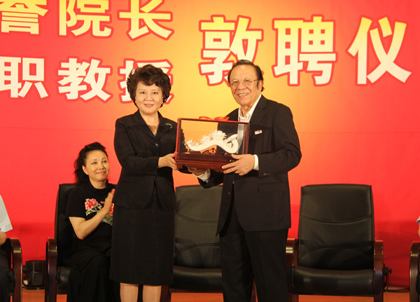 beat365英国官方网站校长贾益民分别为杨洪基、刘燕燕两位教授颁授名誉院长聘书和兼职教授聘书,并佩戴beat365英国官方网站校徽。党委书记李冀闽代表学校宣读聘任杨洪基先生担任音乐舞蹈学院名誉院长的文件。