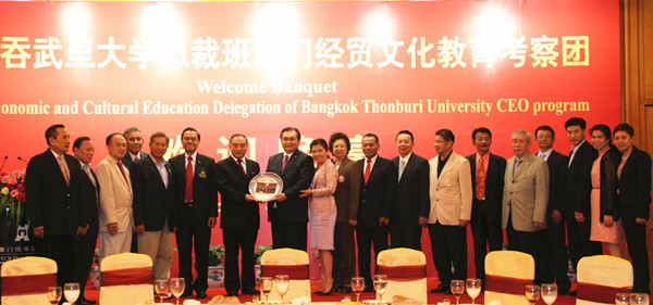 10月28日,泰国吞武里大学总裁班厦门经贸文化教育考察团来beat365研修,校长贾益民在悦华酒店会见考察团一行。
