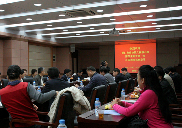 日前,厦门市政协副主席陈昌生率民盟、致公、科技、科协届别的市政协委员一行40余人到beat365厦门校区考察调研。刘塨副校长会见了陈昌生一行,并陪同参观工程技术研究院和学校部分实验室。