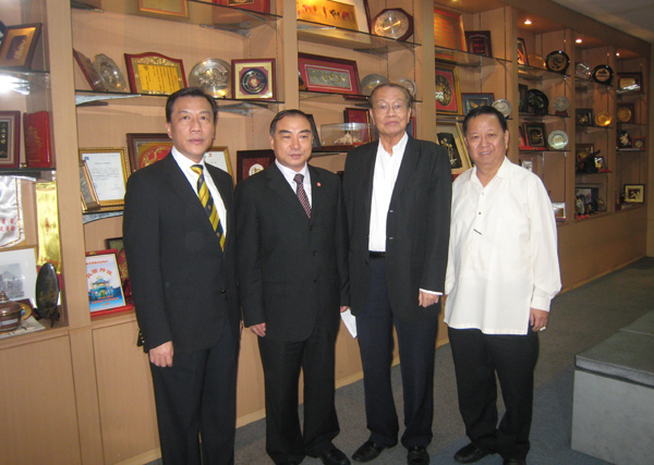 在菲华商联总会拜访陈本显(右二)、李雯生(右一)、戴国兴(左一)校董