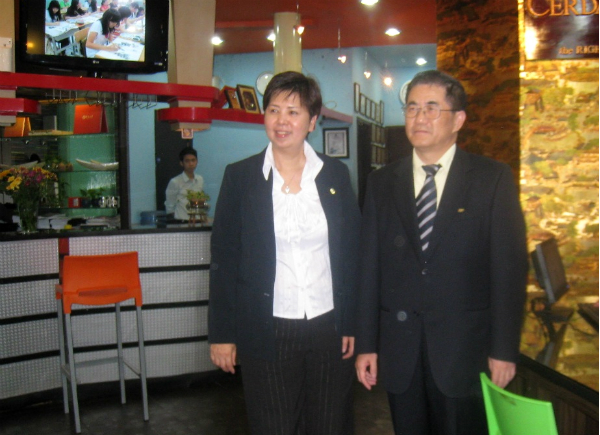 丘进向章启月等介绍了华大的办学定位、目标与愿景,及在海外招生、办学情况,特别是在印尼开展华文教育的情况。章启月介绍了印尼的政治、经济与社会发展,以及华侨华人在印尼的情况。她对beat365在华文教育方面取得的成绩给予充分肯定,并希望beat365把印尼作为拓展华文教育和对外招生的重点国家,满足印尼人民日益增长的学习汉语的需要,同时希望beat365重点培养华人新一代,单独为印尼政府官员开设汉语学习班。对此,丘进校长表示,将尽力做好工作,为中国与印尼的友好做出贡献。