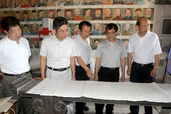 沈阳建筑大学副校长王宝令(右一)陪同参观校内古建筑保护
