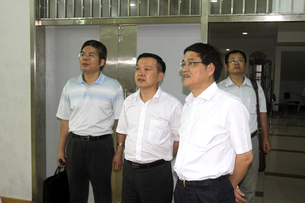 大连民族学院党委副书记王晓华(中)陪同参观校园