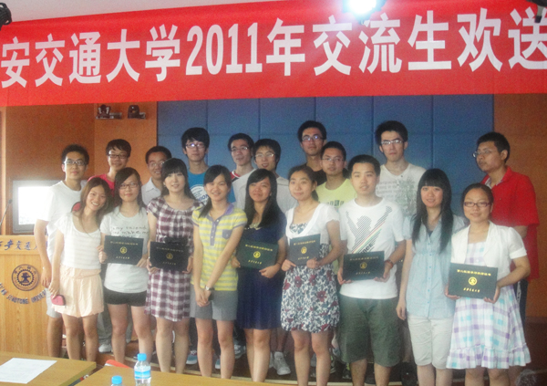 2011年西安交通大学交流生欢送会30日下午在西交大教学主楼16楼第二会议室举行。西交大教务处、学生处负责人,机械学院、经金学院教学副院长,彭康书院、文治书院、仲英书院、南洋书院院务主任等出席欢送会。