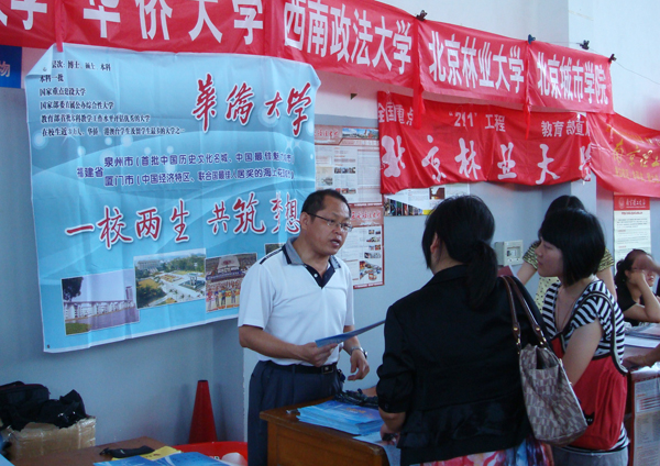 招生宣传组除参加设在浙江工业大学(杭州会场)和温州大学(温州会场)两场2011年浙江省高校招生咨询会外,还分别走访了两地的知名中学杭州二中、学军中学、温州中学、温州二中,接受考生和家长的咨询。