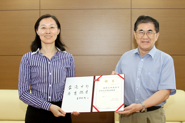 丘进校长向山东侨办主任王琳颁发客座教授聘书
