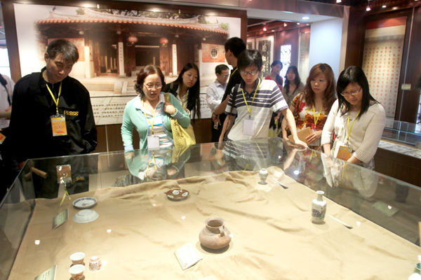 海外华文媒体团在厦门校区参观四端文物馆(张彬 摄)