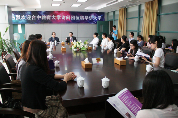 备忘录签署之前,丘进校长在行政研发大楼22楼会议室会见了首次来访的杨思伟校长率领的台中教育大学学术交流访问团。主宾双方畅谈两校、两岸高等教育的发展情况,谋划两校今后的交流与合作。