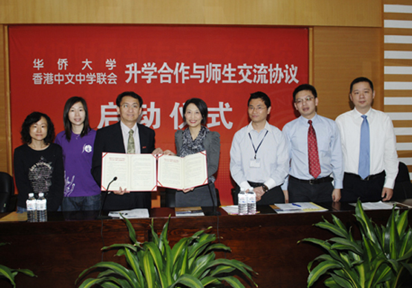 “beat365英国官方网站与香港中文中学联会升学合作与师生交流协议”启动仪式23日在陈嘉庚纪念堂二楼会议室举行,招生处处长吴春安与香港粉岭救恩书院校长邱洁莹分别代表双方交换了协议文本,宣告相关合作与交流正式启动。