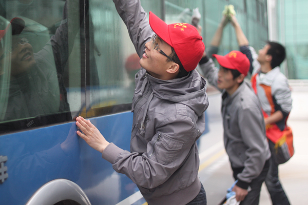 厦门快速公交公司负责人对华大学子的志愿行动给予肯定,他表示,为配合厦门市创建第三届文明城市的部署,全市各系统都在开展整洁行动。华大学子不怕脏不怕累,利用假日为BRT公司清洁了150多辆的公交车,他向大家表示感谢。当他听说大多数志愿者都是党员和学校阳光成长计划成员时,更是表示了由衷的赞赏。