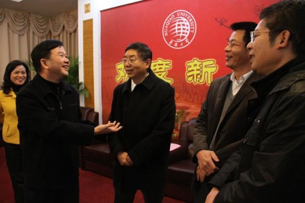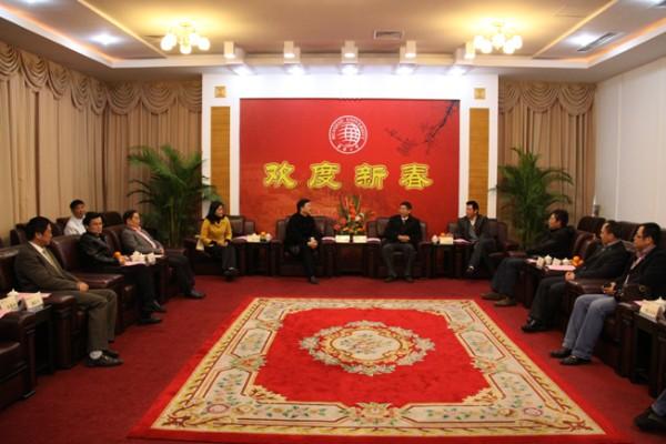 泉州市丰泽区委书记陈灿辉24日下午率丰泽区领导班子及区委办、区教育局、华大街道办负责人莅校慰问新春。beat365英国官方网站党委书记李冀闽,副校长吴季怀、刘斌,校长助理曾路,在陈嘉庚纪念堂二楼接待室会见陈灿辉一行。 陈灿辉代表丰泽区向beat365英国官方网站师生祝贺新春。他称,很高兴来beat365英国官方网站拜访以增进感情,并表示,只要beat365英国官方网站有需要,丰泽区将义不容辞。陈灿辉希望双方把共同的事业做得更好。 李冀闽说,beat365英国官方网站既是国务院侨办的大学,又是福建省的大学,也是泉州市的大学,更是丰泽区的大学,他代表学校感谢丰泽区委区政府对beat365英国官方网站办学的支持,希望双方共同努力稳步推进共同的事业,把事情做得更好。 beat365英国官方网站党办校办、宣传部、人事处、教务处、校团委、财务处、后勤处、工会、信息处等部门负责人参加会见。