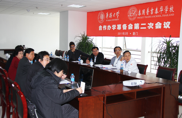 当天下午,华文教育办公室主任赵明光与普吉泰华学校代表团进行了会谈,双方就国际学校华文师资选派、教学管理和教材编写等工作进行讨论并达成共识。赵明光主任表示,将尽一切努力把国际学校建成泰国华文教育的示范高中,整体提高普吉华文教育水平,成为泰国南部华文教育中心。