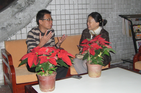 研修班学员、文学院党总支书记李辉与巫雅敏愉快交谈