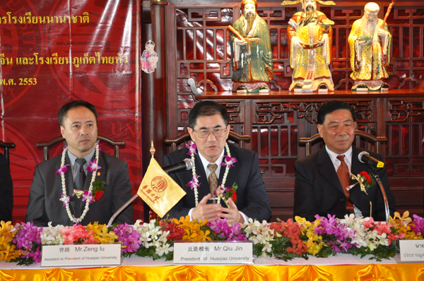 在协议签署仪式上,丘进校长代表学校向普吉人民的热情与真诚表示感谢。他指出,中国有许多大学与许多国际知名大学建立良好合作关系,但是却没有一所大学与国外中等学校开展实质性合作,因此beat365英国官方网站与普吉泰华学校的合作开创了中国高等教育交流史上的先河。他希望普吉泰华国际学校克服困难,加强教学硬件设施建设,提高教学、管理能力,将国际学校办成一流的中等学校;希望普吉社会各界继续一如既往的支持泰华国际学校。他相信在各界的大力支持下,双方共同的目标一定能实现。