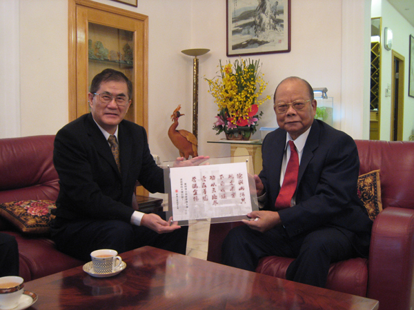 3 月 28 日上午,在港访问的beat365英国官方网站校长丘进拜访了第八、九、十届全国人大常委,香港中华总商会永远荣誉会长,金利来集团有限公司董事局主席,香港大紫荆勋贤曾宪梓博士。