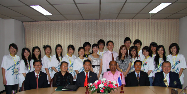 泰国农业大学国际事务副校长Thanisawanyangkura博士亲切会见了艺术团一行,双方就联办孔子学院以来的合作事务交换了意见,并表示愿意以孔子学院为平台,进一步拓展两校在更广泛领域的交流与合作。该校外事处Somsdat处长、孔子学院中方院长赵新城一同参加了会见。