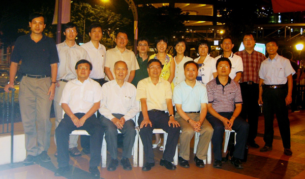 访问团与新加坡校友合影。前排右三李冀闽书记,右四为客座教授梁荣基先生